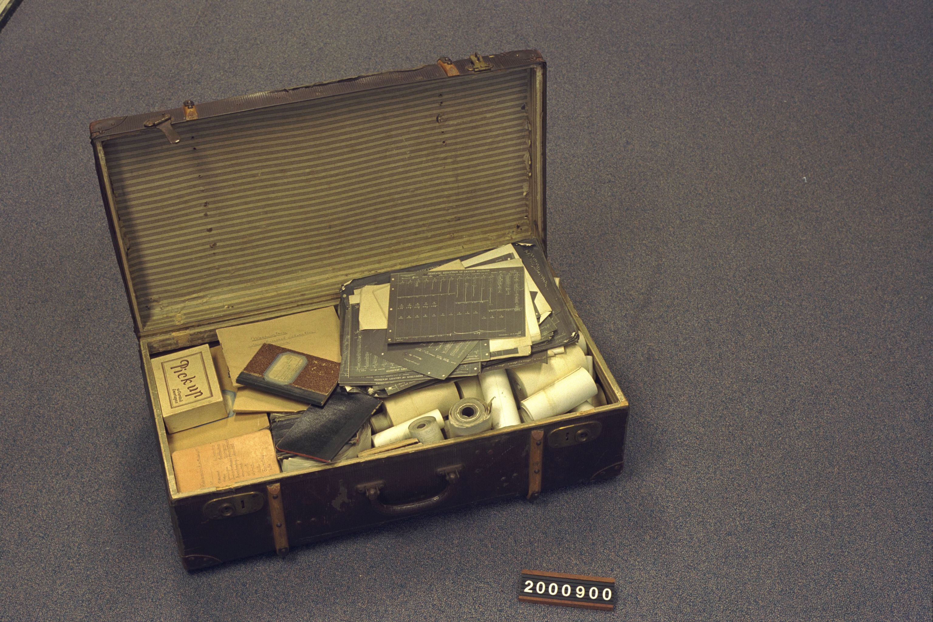 | Description | Koffer met logboeken, aantekenboeken en diverse rollen papier door prof. dr. ir. Felix Andries Vening Meinesz (Den Haag, 30 juli 1887 – Amersfoort, 10 augustus 1966) en ir. Ewoud Anthony Jacob Herman Modderman (1874-1908) waarop de tijdwaarnemingen, slingerproeven, zwaartekrachtmetingen van prof. Vening Meinesz zijn geregistreerd. De inhoud van de koffer is beschreven in inventarisnummer: 2007.0182.GEO en 2007.0183.GEO. |