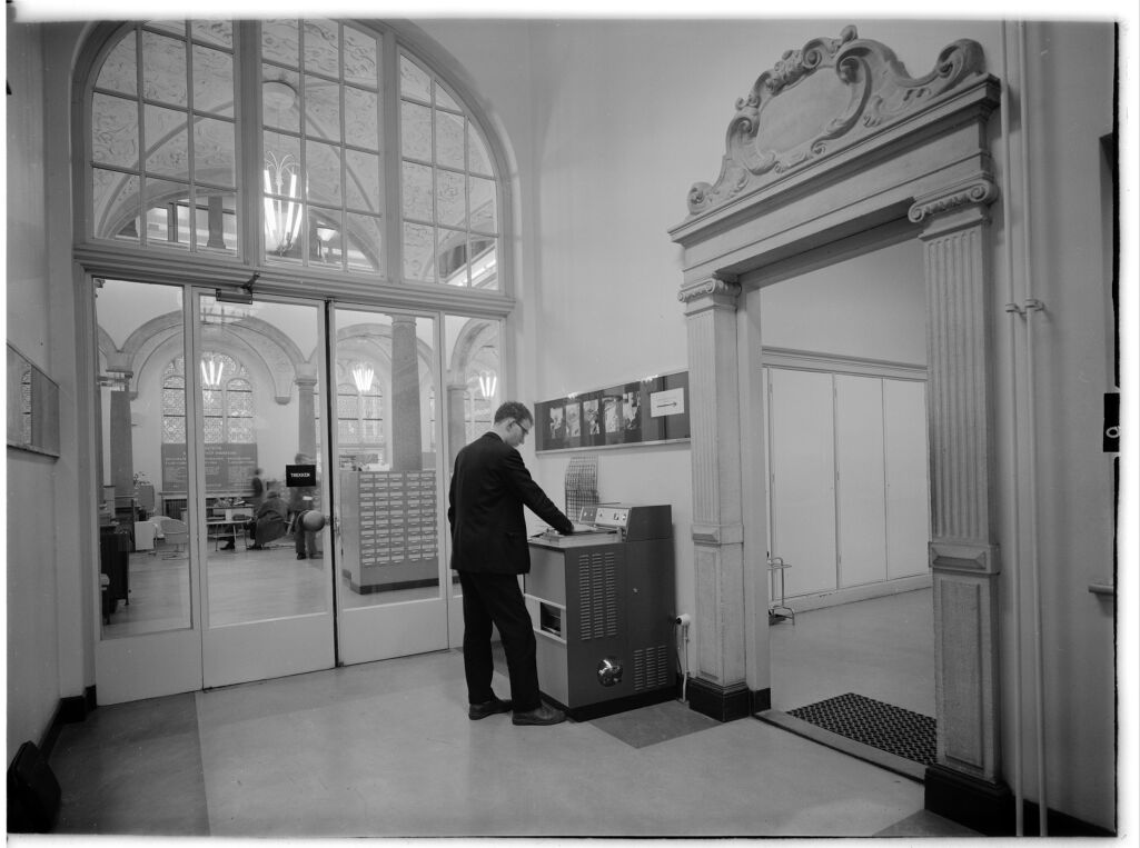 | Description | Kopieerapparaat van het merk Docustat in de hal van de bibliotheek van de Technische Hogeschool Delft aan de Doelenstraat. |