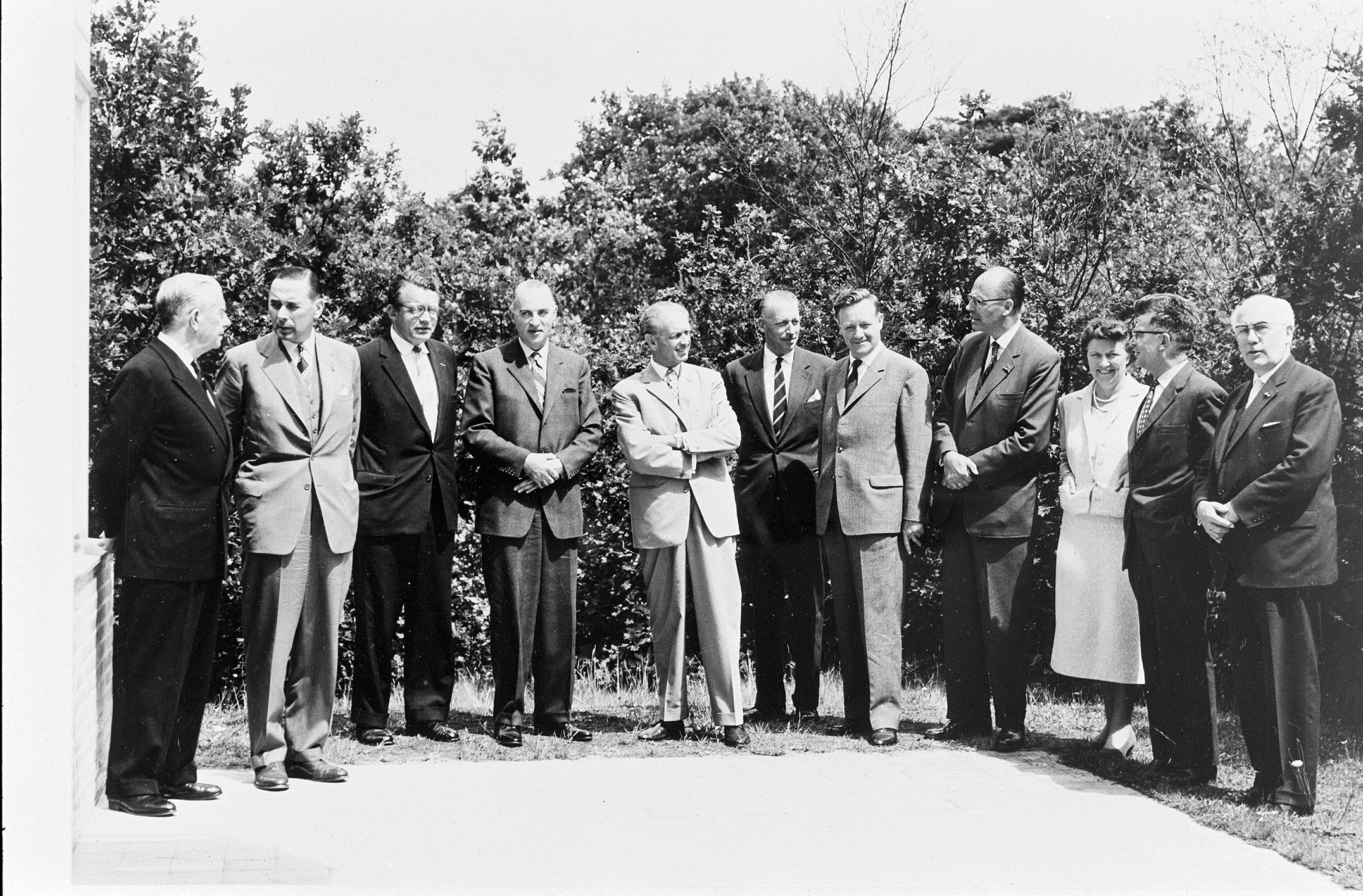 DescriptionDe laatste curatoren vergadering in 1960 vond plaats in de woning van C.H. van der Leeuw aan de Buurtweg 81 in Wassenaar. Diverse portretopnamen, van o.a. Dhr. Maris en Dhr. Bakels curatoren, en Mej. Portheine van het secretariaat van curatoren.