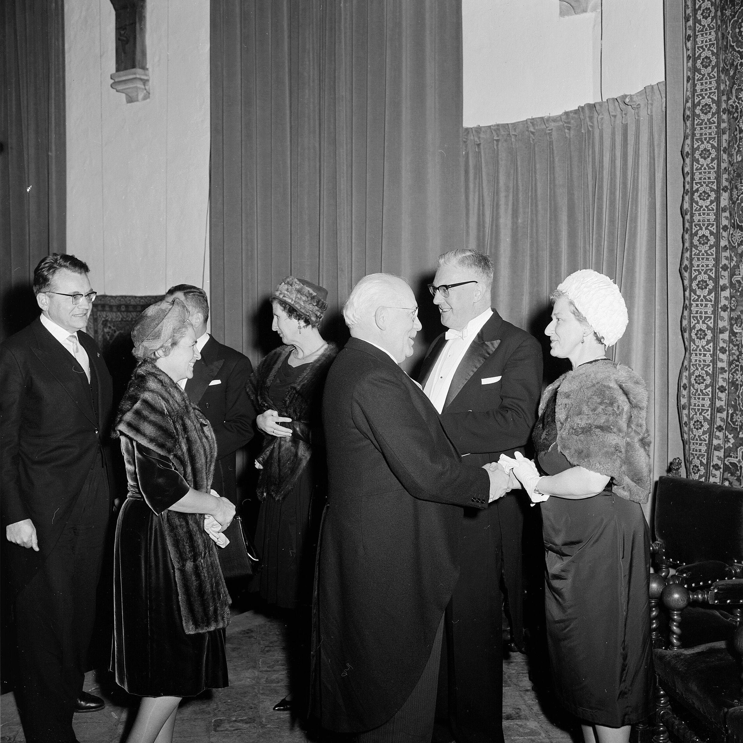 | Description | De viering van 121e Dies Natalis van de TH Delft in de Westerkerk te Delft met aansluitend een receptie in het Prinsenhof op 12 januari 1963. De viering stond in het teken van de erepromotie van dr. A. Bouwers. |