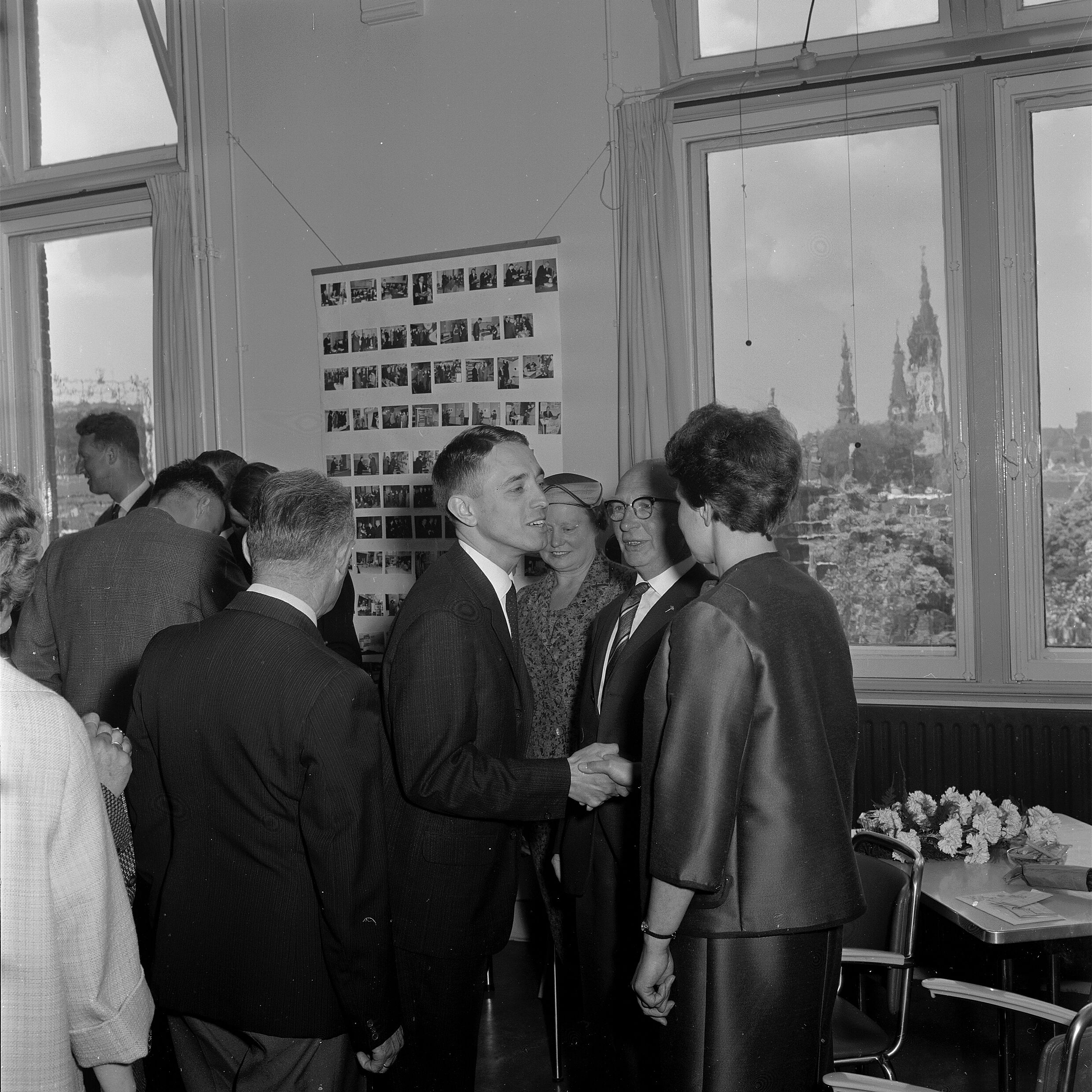 | Description | Bijeenkomst ter gelegenheid van het 40 jarig jubileum van de heer L.S. van Wijk bij de afdeling Elektrotechniek van de Technische Hogeschool Delft. De bijeenkomst heeft plaats gevonden in het voormalig gebouw voor Natuurkunde en Elektrotechniek, Kanaalweg 2b -2c. |