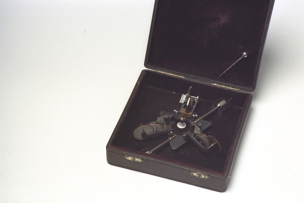 | Description | Cartometer door L. Tesdorpf voor het bepalen van afstanden over een kromme of gebogen lijnstuk op een kaart. Deze cartometer is voorzien van drie wielen en is opgeborgen in een met textiel bekleed etui. Gebruiksaanwijzing is aanwezig. Dit type is ontworpen door E. Fleischhauer. Op 15 november 1905 is Tesdorpf overgenomen door F. Sartorius (Göttingen). |