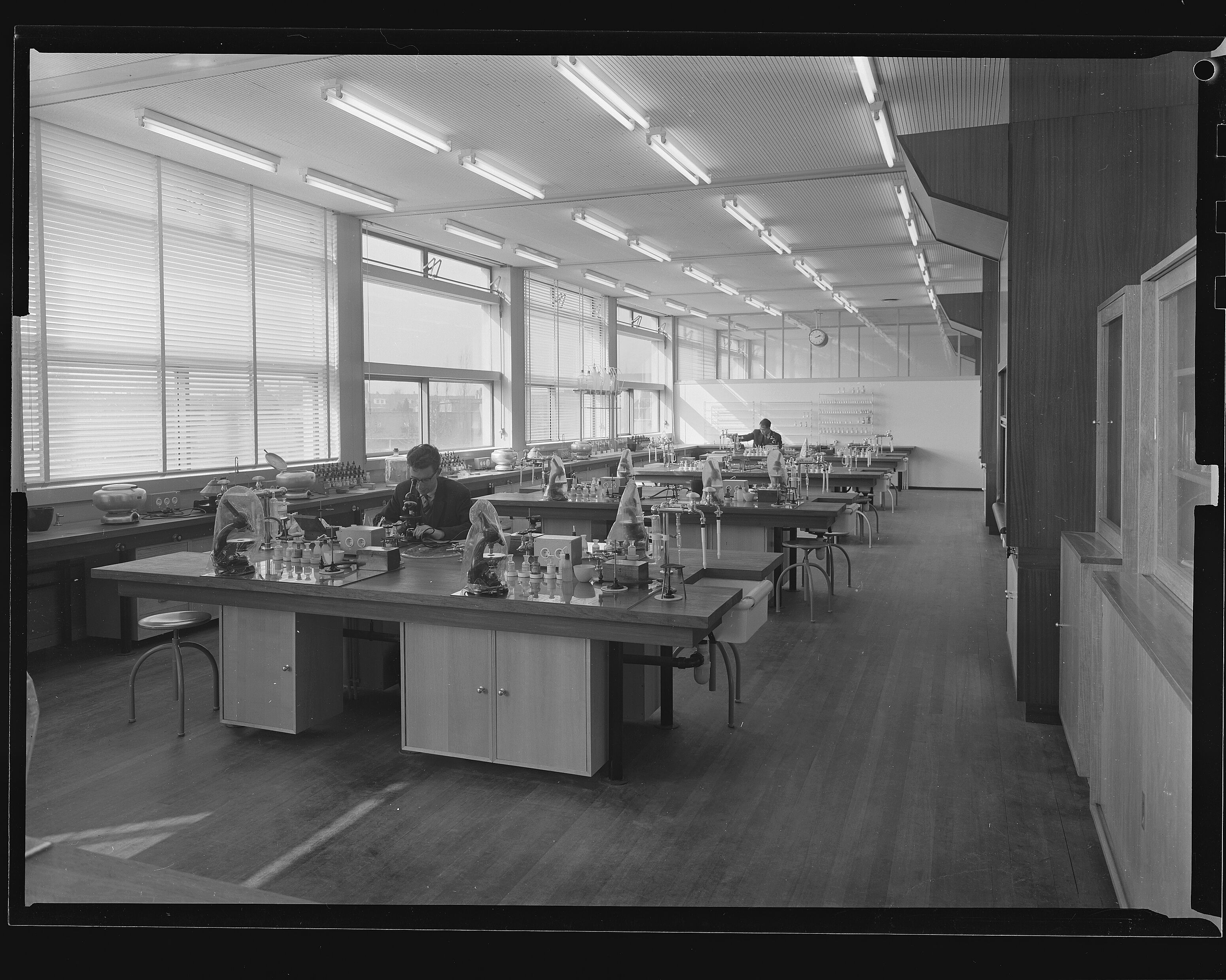 DescriptionLaboratoriuminrichting gebouw voor Analytische Scheikunde, TH Delft, Jaffalaan 9. In de volksmond ook wel Blauwe Scheikunde genoemd. De eerste paal werd geslagen in 1958. Later is onderzoeksbureau OTB en Dienst Onderwijs en Studentenzaken gevestigd in dit gebouw. Jaffalaan 9 is oorspronkelijk een ontwerp van architectenbureau Van den Broek en Bakema. Jaar 1960 is geschat.