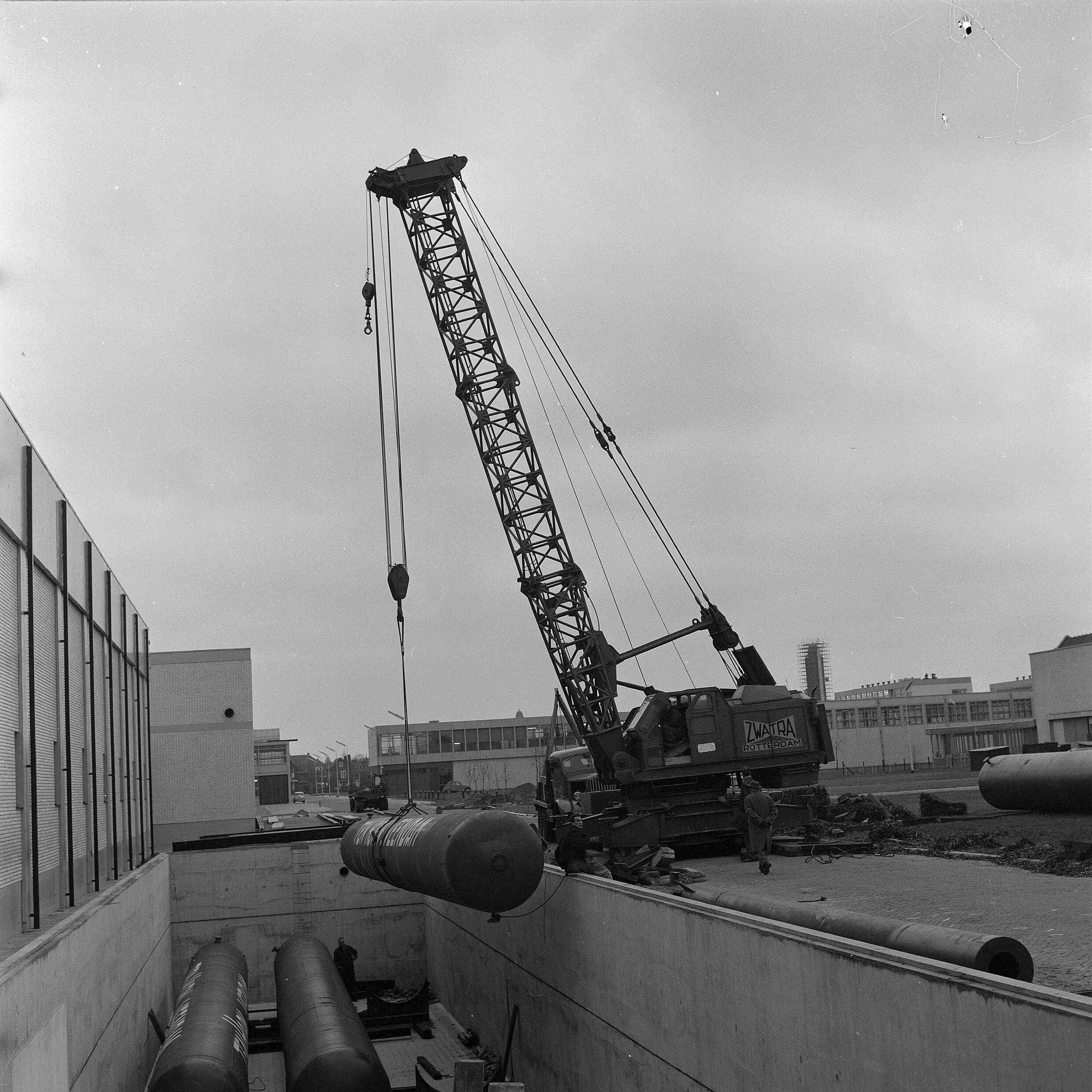 | Description | Het plaatsen van tanks tijdens de bouw in de kelder van het gebouw van Aero- en Hydrodynamica aan de Rotterdamseweg 145 te Delft. |
