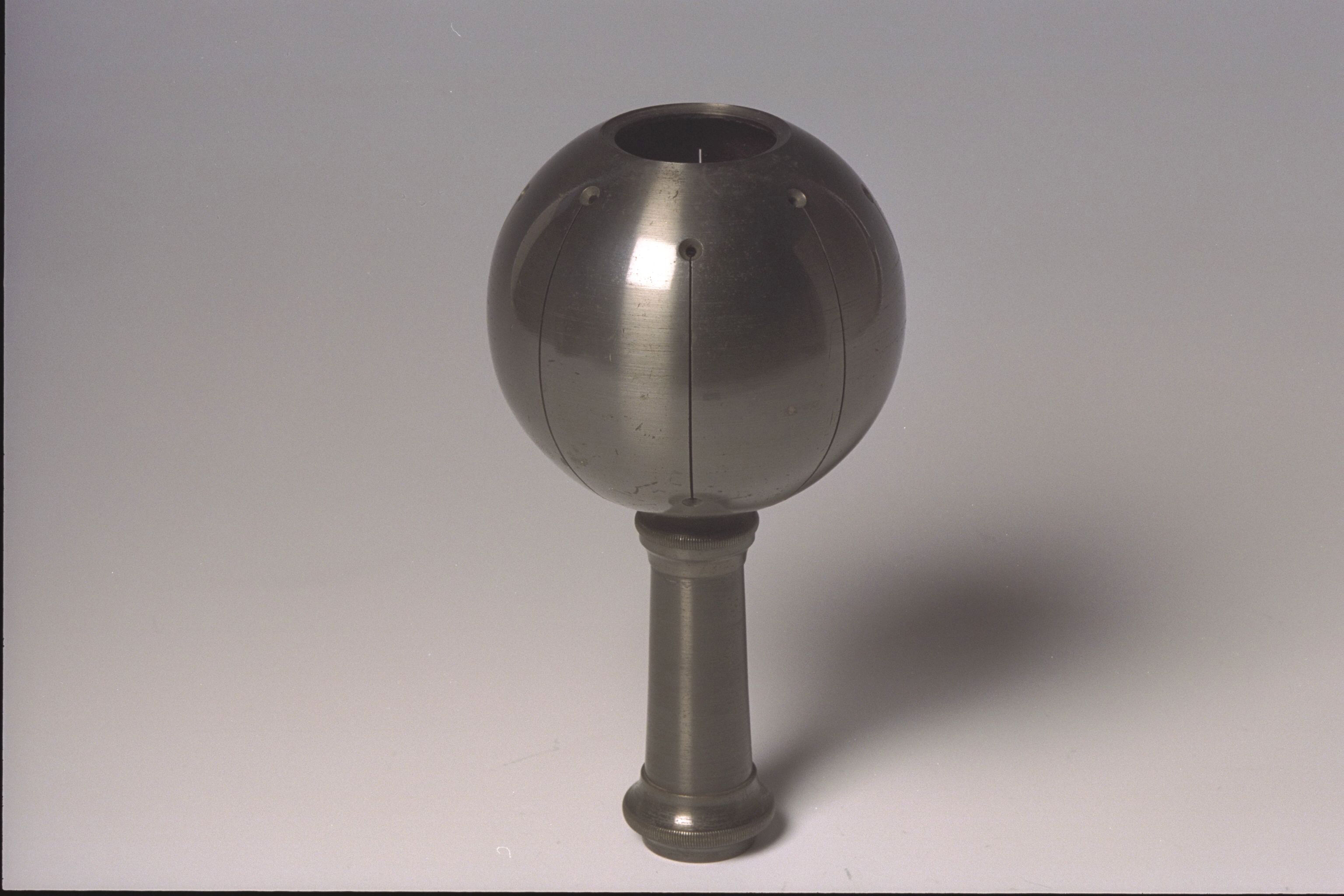 | Description | Bolvormige equerre door Société des Lunetiers met centrumbeweging, voor uitzetten en vaststellen van hoeken van 45 graden en veelvouden daarvan. Door de bolvorm is dit instrument vooral geschikt voor gebruik in geaccidenteerd terrein.