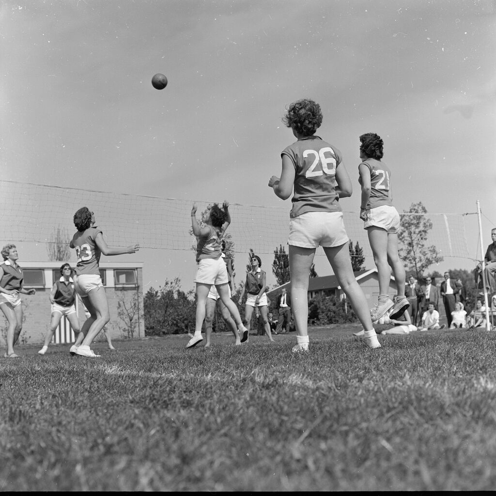 DescriptionSporttoernooi in Amsterdam. Deelnemers zijn medewerkers van verschillende universiteiten. Onderdelen herenvoetbal en damesvolleybal.