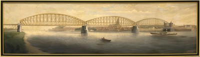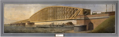 Voor private spooorwegondernemers was het niet mogelijk om kostbare brugverbindingen aan te leggen over de Nederlandse rivieren. Hier kwam verandering in na 1860, toen de spoorwegaanleg een staatszaak werd. De spoorbruggen bij Culemborg en Zaltbommel werden ontworpen door G. van Diesen (1826-1916); de Moerdijkbrug en de spoorbrug bij Nijmegen werden ontworpen door J.G. van den Bergh (1824-1890). Een grote uitdaging vormde het kruiend ijs: in de Waal en de Lek fungeerde de brugpijlers zodoende als ijsbreker. In Culemborg, waar dit onmogelijk was, werd één grote overspanning gebruikt. De eer van langste brug van Europa werd niet lang daarna overgedragen aan de Moerdijkbrug. Op de doeken wordt de technische vooruitgang onder andere uitgebeeld door het contrast tussen enerzijds zeilschepen en trekschuiten, en anderzijds stoomraderboten en stoomtreinen.