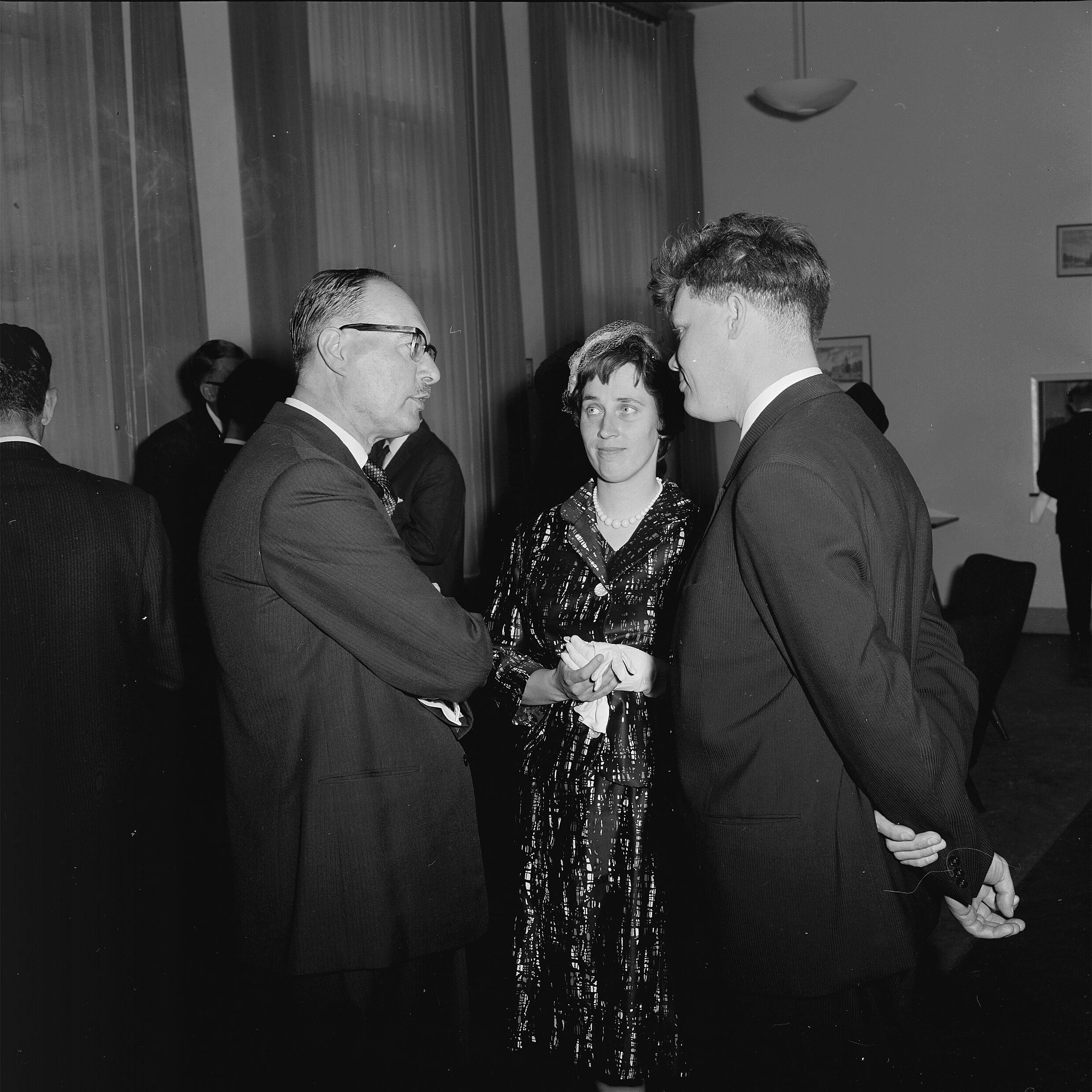 | Beschrijving | Op 30 mei 1963 promoveerde de heer P.H. Gallé, medewerker van de bibliotheek van de Technische Hogeschool Delft, aan de Rijksuniversiteit Leiden. De bijeenkomst en receptie vonden plaats in de Bibliotheek van de TH Delft, Doelenstraat 101 te Delft. |