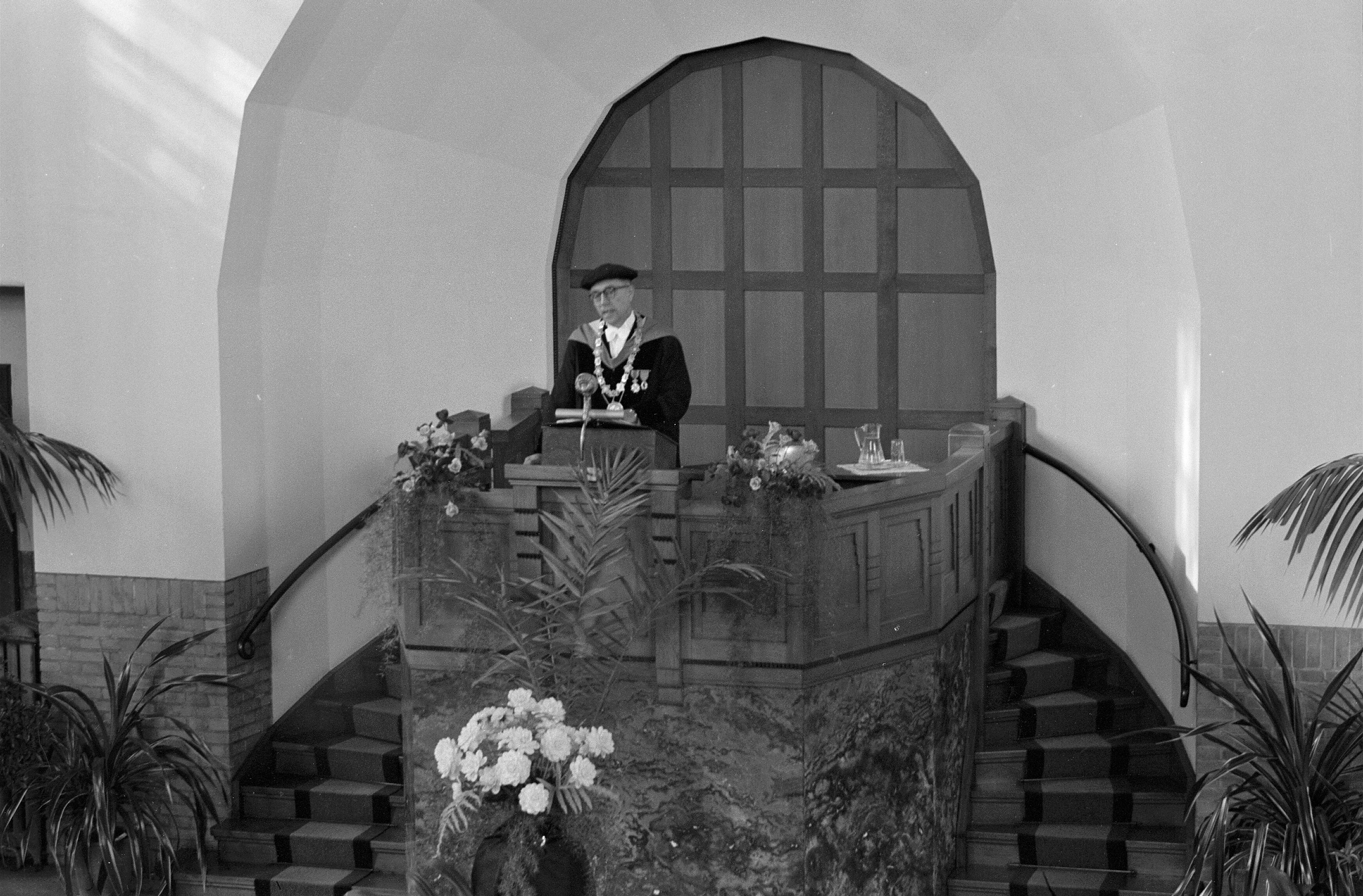| Beschrijving | Op 21 september 1959 droeg prof.dr. O. Bottema in de Westerkerk zijn rectoraat over aan prof. dr. R. Kronig |