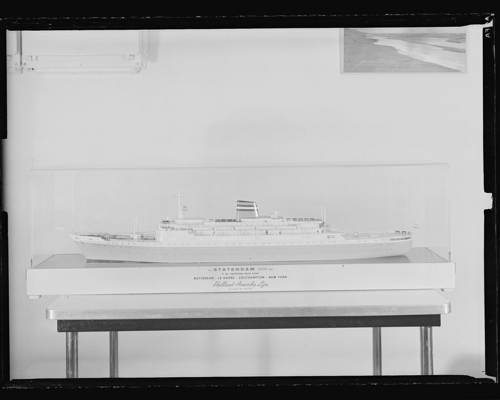 | Beschrijving | Vitrinekast met model van motorschip Statendam van de Holland Amerika Lijn, De tonnage van dit schip bedraagt 24294 dwt. Jaar 1957 is geschat. |