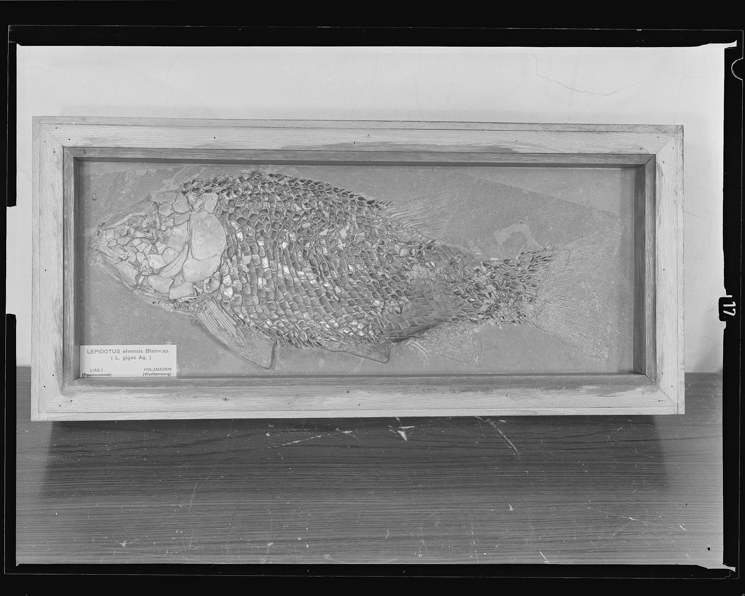 | Titel | Mineralogisch en Geologisch Museum Delft. Lepidotus elvensis Blainv.s.p. Holzmaden Württemberg |