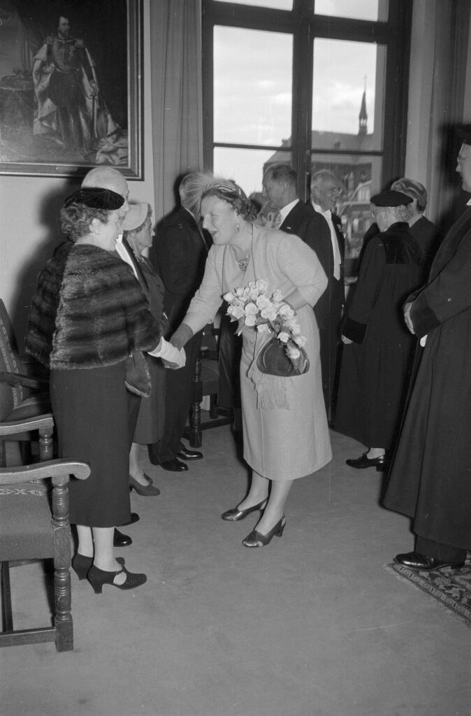 | Beschrijving | Op 26 september 1955 werd in de Nieuwe Kerk in Delft de Plechtige Buitengewone Vergadering van de Senaat van de TH Delft gehouden ter gelegenheid van het 50-jarig bestaan van de TH Delft. Speciale gasten waren Koningin Juliana, premier Willem Drees, vicepremier Louis Beel, de rectores magnifici en de secretarissen van de senaten van alle Nederlandse universiteiten en hogescholen en de eredoctoren van de TH Delft. Aansluitend op deze herdenkingsbijeenkomst vond er een receptie plaats in de raadzaal van het Stadhuis van Delft. |