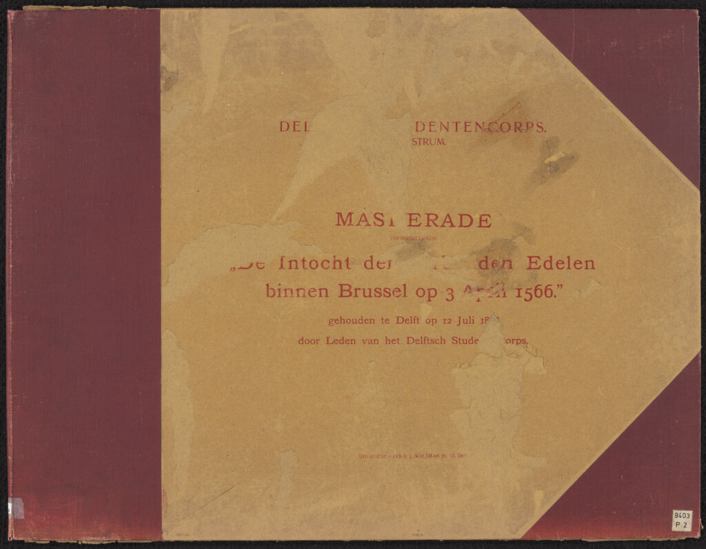 TitleMaskerade, voorstellende : 'De intocht der verbonden edelen binnen Brussel op 3 april 1566', gehouden te Delft op 12 juli 1898 door leden van het Delftsche Studentencorps